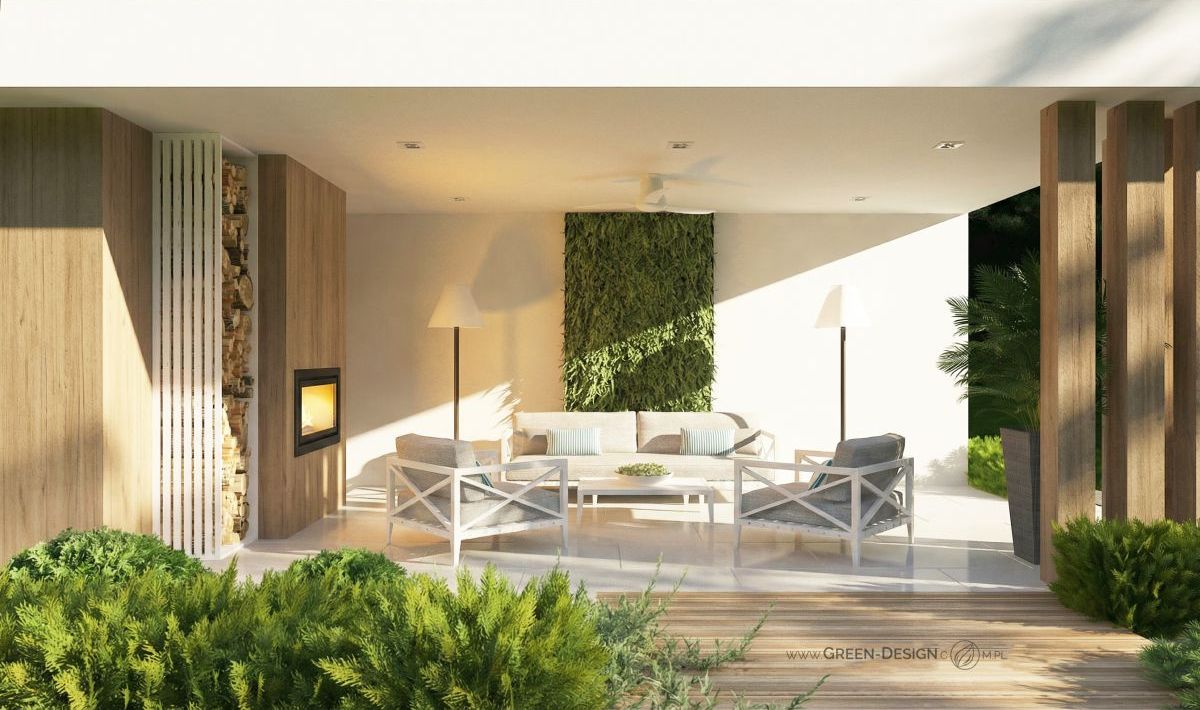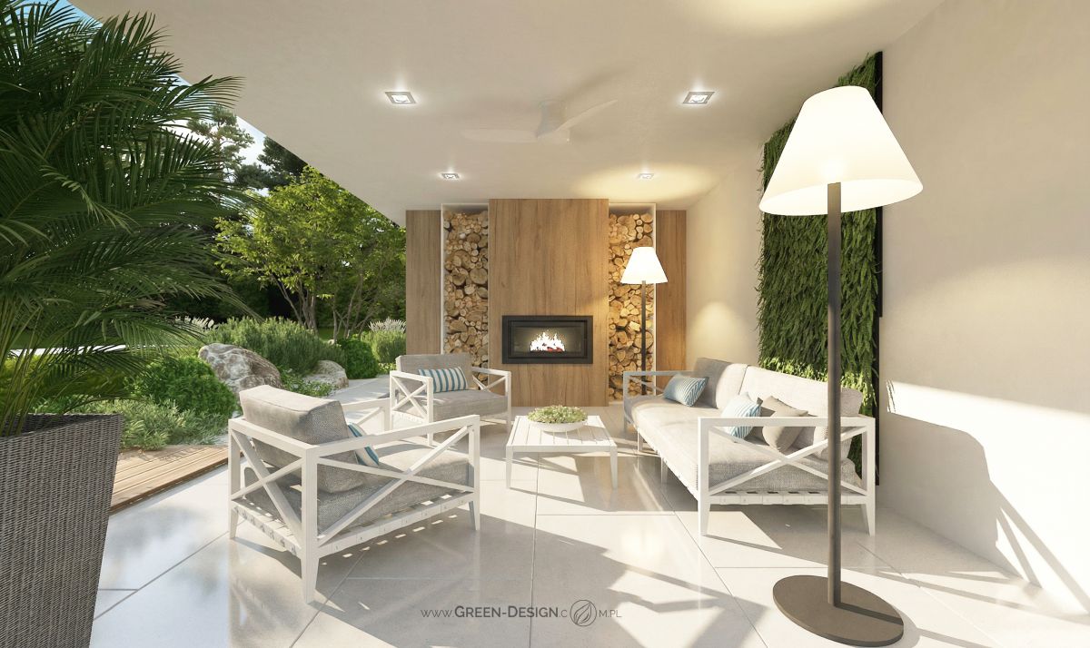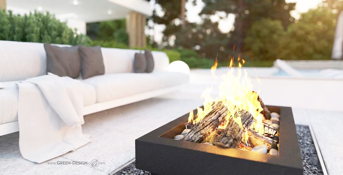 Serce ogrodu — strefa wypoczynkowa przy kominku